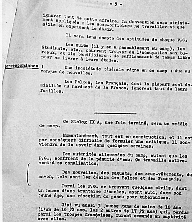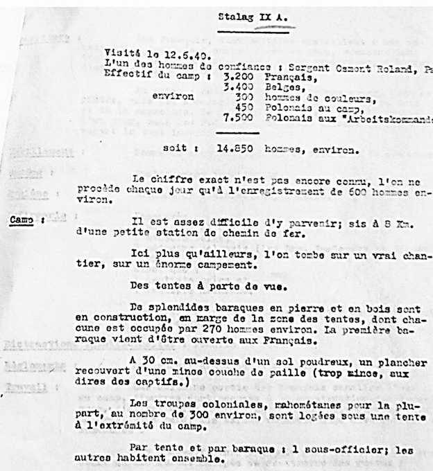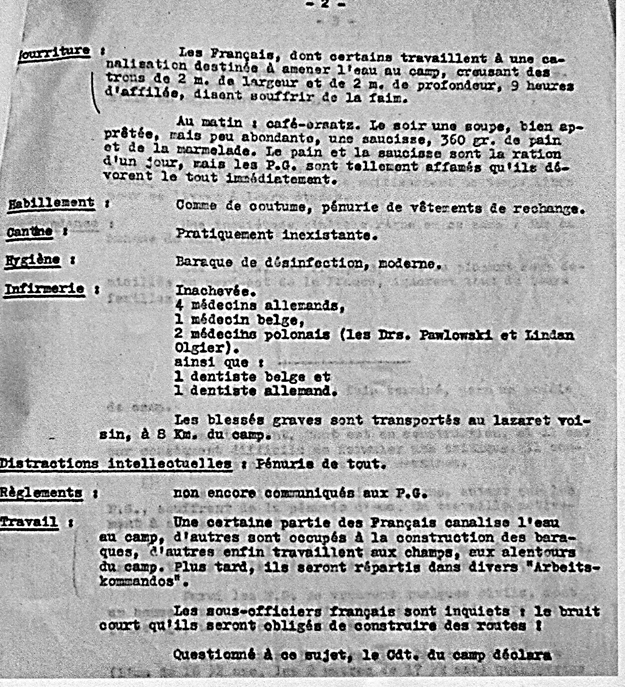 Rapport 3 pages de visite du chantier des baraques en cours de construction du 12 juin 1940 en présence de la Croix Rouge et de l'homme de confiance.