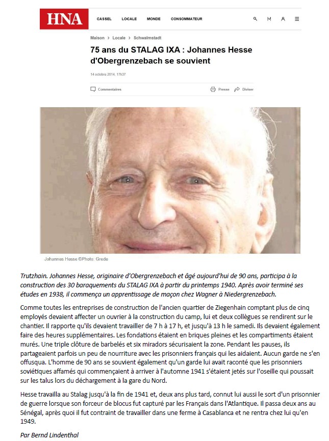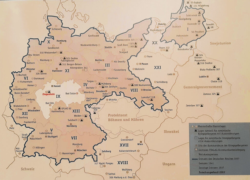 Septembre 1939: dans une pâture appartenant au Kreis de Ziegenhain, commune de Steina en Hesse, les fermiers faisaient paitre leurs bêtes. Puis les premiers travaux démarrèrent avec des ouvriers Allemands, rapidement remplacés par des prisonniers Polonais en novembre 1939. Des toiles de tentes à perte de vue sur ce chantier en guise de logement. Le rude hiver de 1939/40 ralentit les constructions en maçonnerie et les 1éres baraques firent leur apparition vers mai-juin 1940 avec le renfort de prisonniers Français mis au travail. De dimension standard, 63 M x 12 M, elles contenaient 270 hommes avec un sous-officier pour responsable. Les équipements sanitaires furent aménagés au fur et à mesure mais souffrirent fréquemment du manque d’eau. D’une superficie de 47 hectares avec plus de 53.000 prisonniers, il s’agissait du plus grand camp de prisonniers de guerre du Wehrkreis IX.